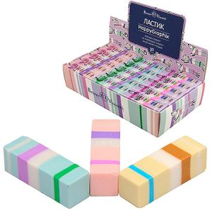 Ластик " Bruno Visconti " HappyGraphix Полосатики, 45*15*15мм, ассорти - 3 цвета, синтетический каучук, картонный дисплей