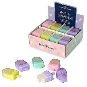 Ластик " Bruno Visconti " HappyGraphix Мороженки, 30*60*15мм, ассорти - 4 вида, термопластичная резина, картонный дисплей
