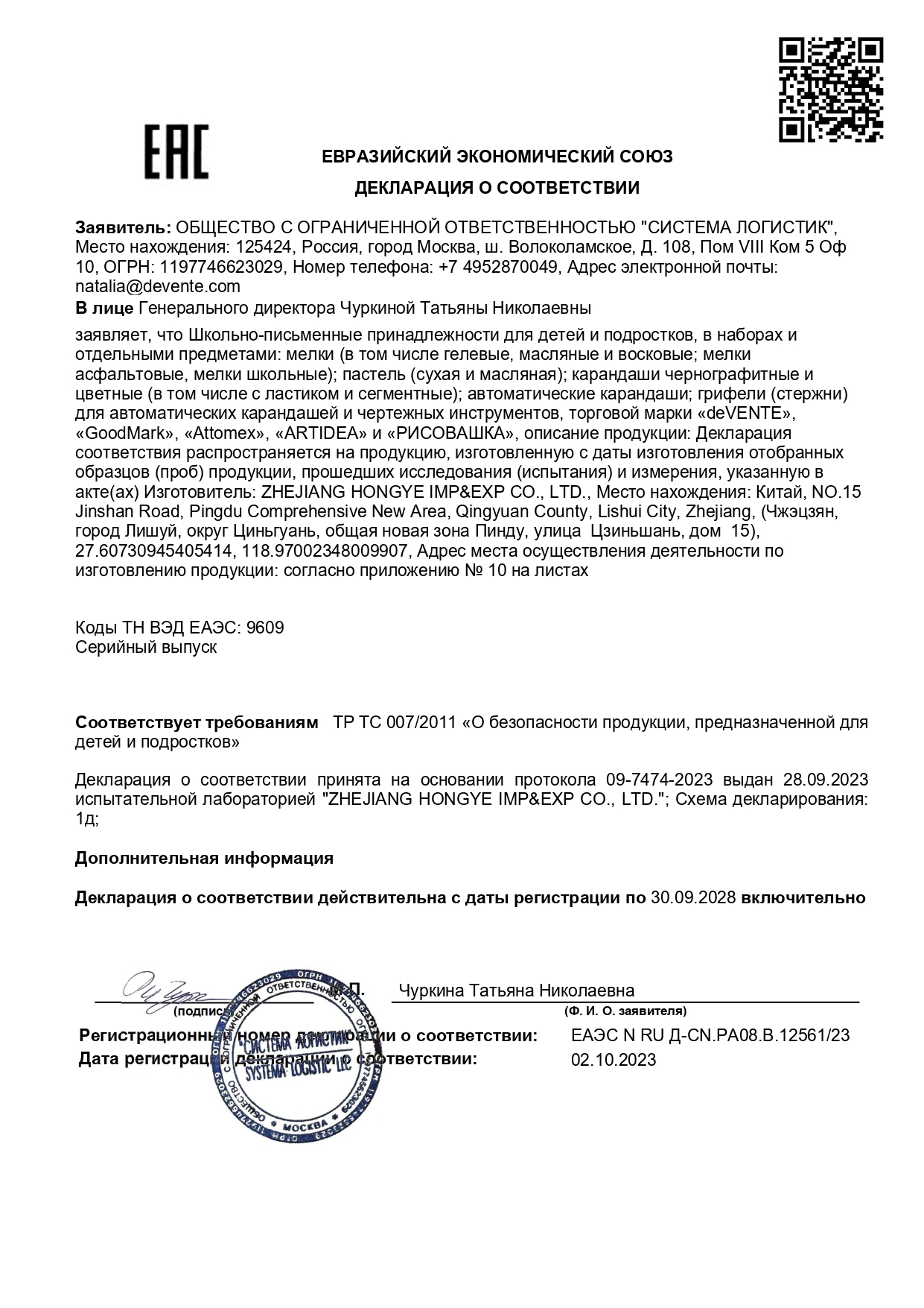 Декларация о соответствии №ЕАЭС N RU Д-RU.PA02.B.13770/23