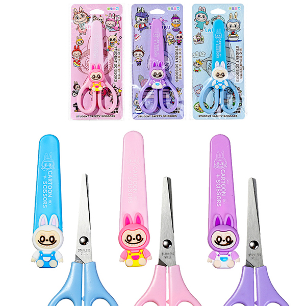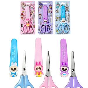 Ножницы детские " Mazari " Лабубу 14см, металлические, пластиковые ручки, защитный футляр с каучуковым декоративным элементом, ассорти (без возможности выбора цвета), пакет, европодвес