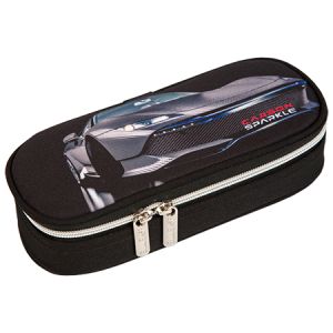 Пенал " deVente " 1 отделение 21*8*5см, Carbon, овальный, откидная планка-оргонайзер, на молнии, текстиль