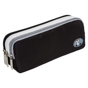 Пенал " deVente " 3 отделения 21*8,5*5,5см Fluffy Ears. Rabbit прямоугольный, на молнии, вышивка, текстиль, серо-черный