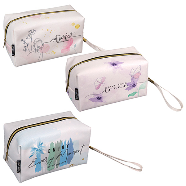 Пенал-косметичка "deVENTE. Spring" 18x10,5x9 см, прямоугольный для 150 предметов, на молнии, матовая искусственная кожа, с ручкой-петлей на карабине, 3 дизайна ассорти, индивидуальная упаковка