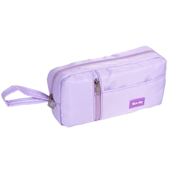 Пенал " deVente " 2 отделения 21*10*6см, Nice Day, прямоугольный, нейлон, на молнии, наружный карман открытого типа, ручка-петля, аппликация, фиолетовый