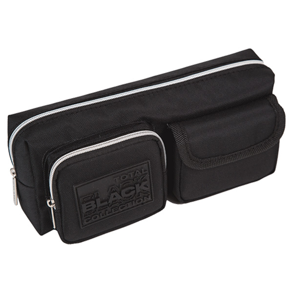 Пенал " deVente " 1 отделения 21*8,5*6см Total Black, прямоугольный, на молнии, текстиль, наружный карман на молнии, наружный карман на липучке, аппликация, черный