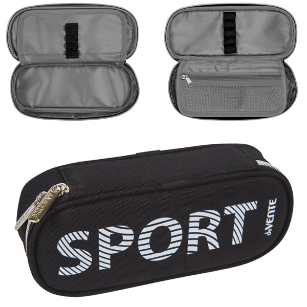 Пенал " deVente " 1 отделения 21*8*5см Sport, овальный, откидная планка, на молнии, текстиль, черный
