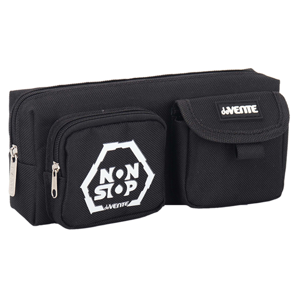 Пенал " deVente " 1 отделение 21*8,5*6см Non Stop, прямоугольный, на молнии, текстиль, наружный объемный карман на молнии, наружный объемный карман на липучке, черный