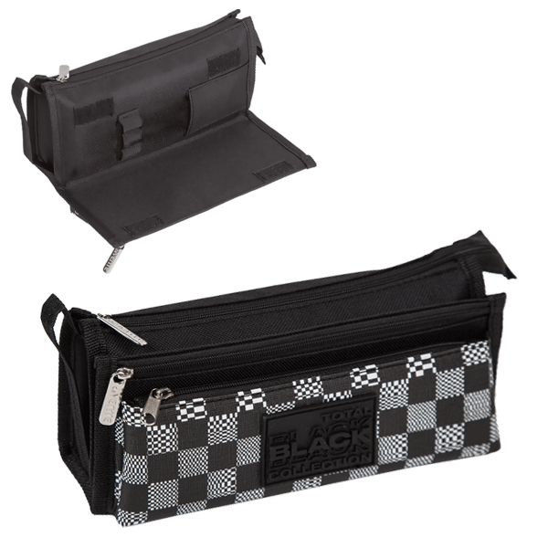 Пенал " deVente " 1 отделение 21*10*7,5см Total Black, прямоугольный, на молнии, текстиль, 2 наружных объемных кармана на молнии, органайзер, аппликация, ручка-петля