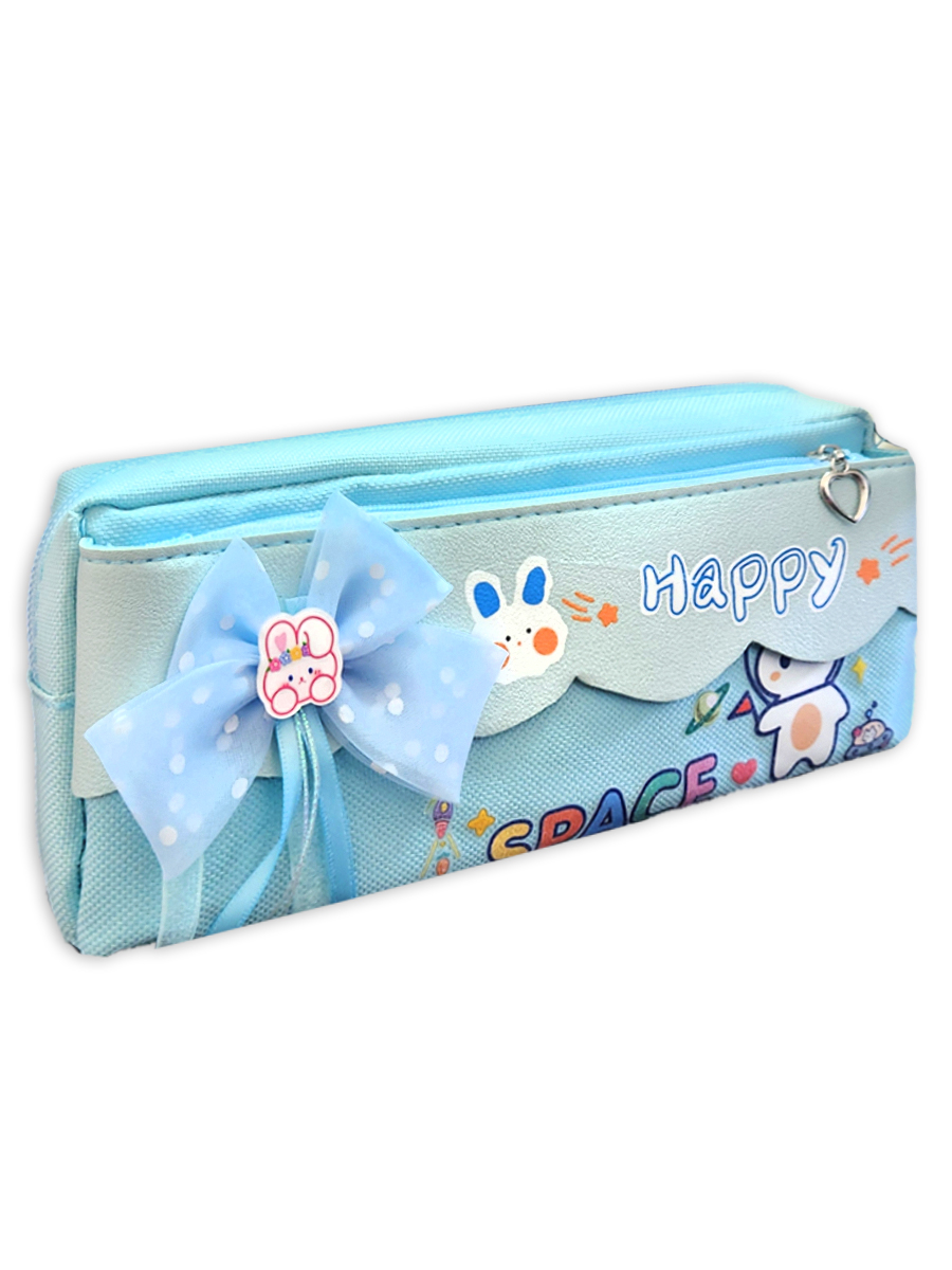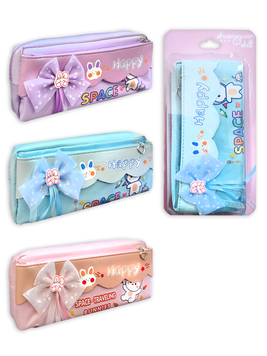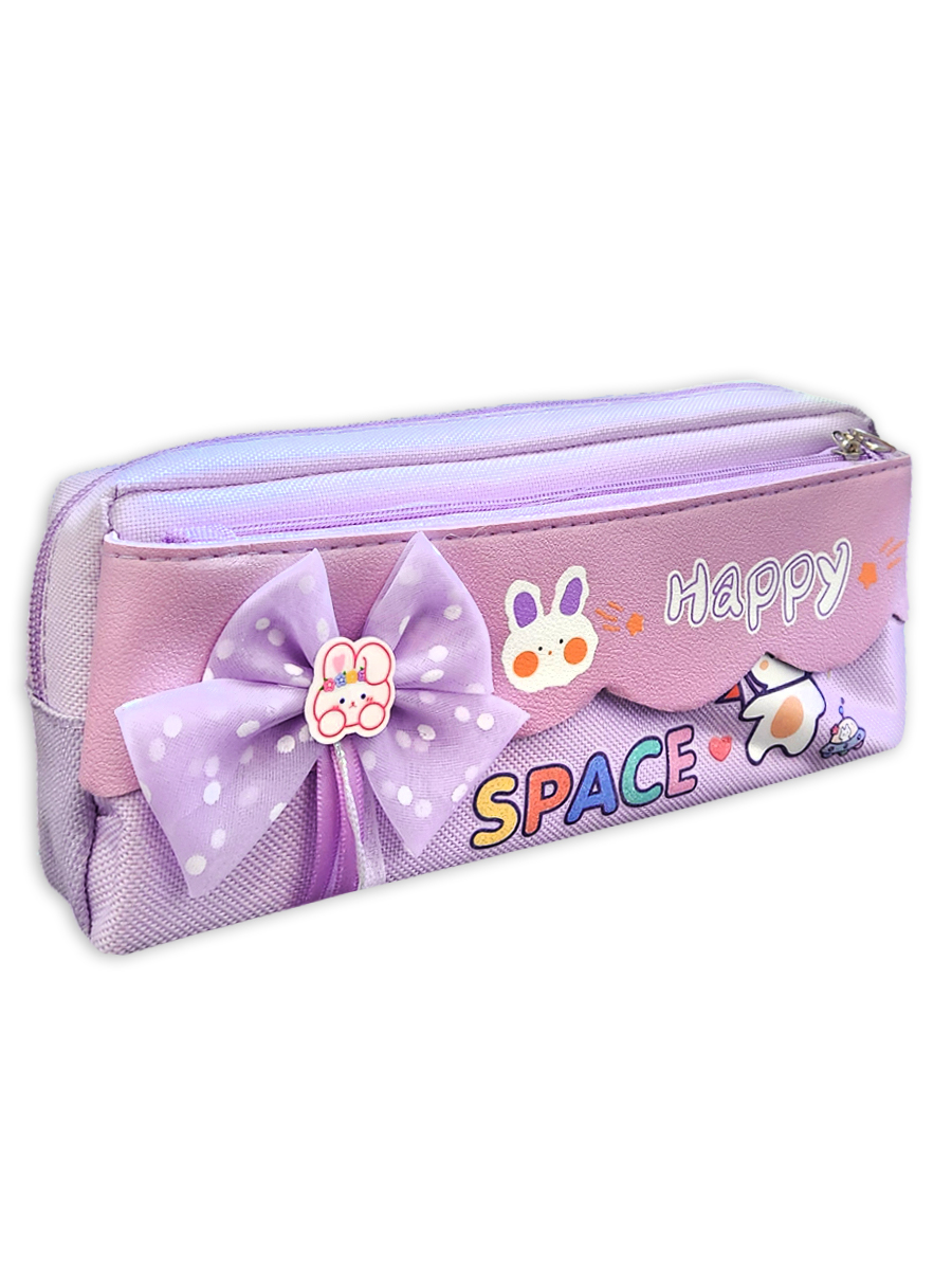 Пенал " KWELT " 1 отделение 215*95*60мм, Happy space, внешний карман на молнии, цвет - ассорти (без возможности выбора цвета), текстиль, блистер, европодвес