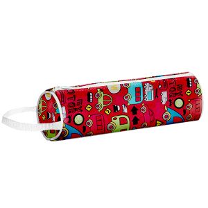 Пенал-тубус " KWELT " 1 отделение 200*65мм Transport, цвет- красный с рисунком, текстиль, на молнии