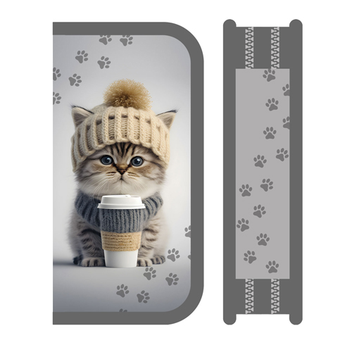Пенал " Пчелка " ПО-901 2 отделения 105*190*35мм, Котенок в шапке, тканевый торец, бархатное покрытие soft-touch