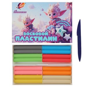 Пластилин " Луч " Фантазия 8цв (пастельные цвета) 120г восковой, мягкий, со стеком, картонная упаковка