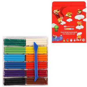 Пластилин " Цветик " 12цв 180г восковой со стеком, картонная упаковка