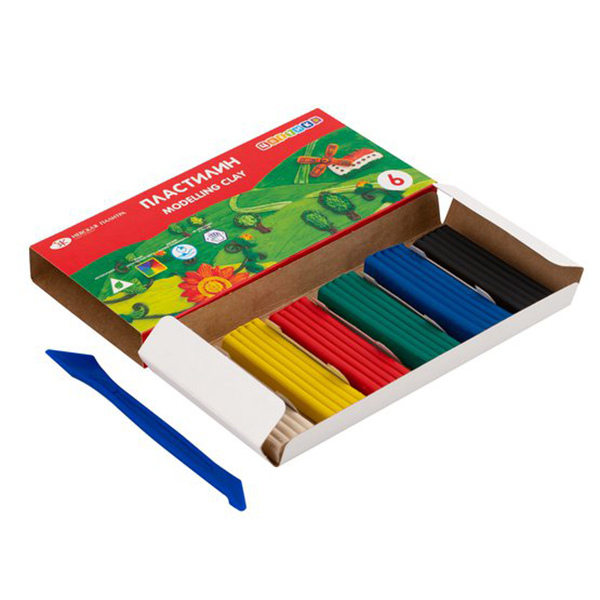 Пластилин " Цветик " Классика 6цв 90г со стеком, картонная упаковка