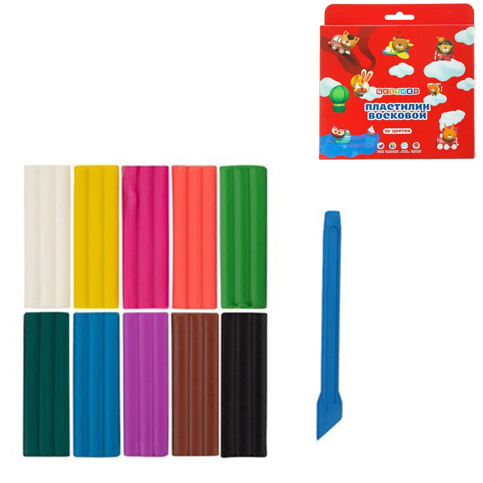 Пластилин " Цветик " 10цв 150г восковой со стеком, картонная упаковка