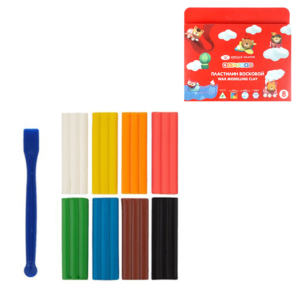 Пластилин " Цветик " 8цв 120г восковой со стеком, картонная упаковка
