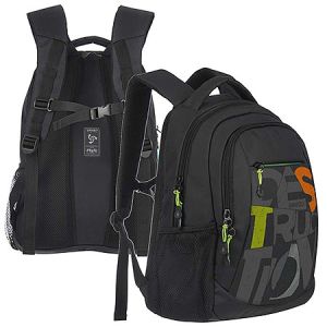Рюкзак " Grizzly " 31*42*18см черный/салатовый, 2 отделения, эргономичная твердая спинка, карман на молнии на передней стенке, боковые карманы из сетки, внутренний держатель для ключей - фастекс, внутренний карман для электронных устройств, внутренни