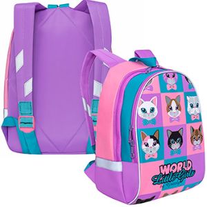 Рюкзак " Grizzly " 29*38*18см RS-897-2/1 аметист, 2 отделения, внутренний карман, дополнительная ручка-петля, укрепленные лямки, светоотражающие элементы с четырех сторон, детский