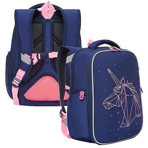 Рюкзак " Grizzly " 26*36*17см синий/фуксия, 2 отделения, эргономичная спинка, карман для планшета или небольшого ноутбука 13", боковой карман на резинке, дополнительная ручка-петля, нагрудная стяжка-фиксатор, укрепленные лямки, светоотражающие элемен