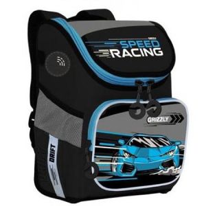 Ранец " Grizzly " 26*35*16см черный/синий, 1 отделение, эргономичная твёрдая спинка, карман на молнии на передней стенке, боковой карман на резинке, разделительная перегородка- органайзер, дополнительная ручка, нагрудная стяжка-фиксатор, укрепленные