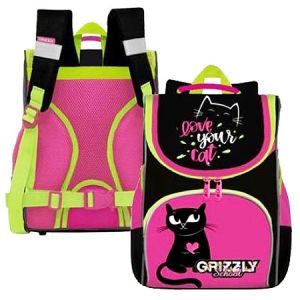 Рюкзак " Grizzly " 25*33*13см черный/розовый, с мешком, 1 отделение, эргономичная твёрдая спинка, жесткое дно и боковины, карман на молнии на передней стенке, боковой карман на резинке, дополнительная ручка, нагрудная стяжка-фиксатор, укрепленные лям