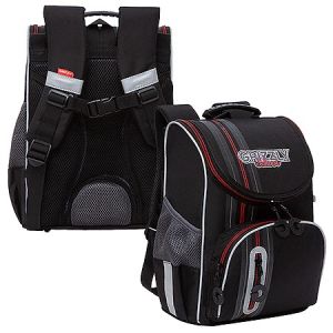 Ранец " Grizzly " 25*33*13см черный, с мешком, 1 отделение, эргономичная твёрдая спинка, жесткое дно и боковины, карман на молнии на передней стенке, боковые карманы на резинке, разделительная перегородка- органайзер, дополнительная ручка, нагрудная