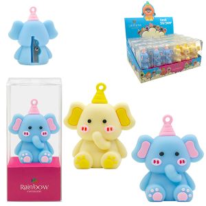 Точилка " KWELT " пластиковая с покрытием soft-touch Elefant 1 отверстие, цвет ассорти, индивидуальная пластиковая упаковка, европодвес, дисплей