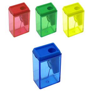 Точилка " KWELT " 2,5*4*1,5см пластиковая 1 отверстие, с контейнером, цвет ассорти (4 цвета), пластиковая упаковка