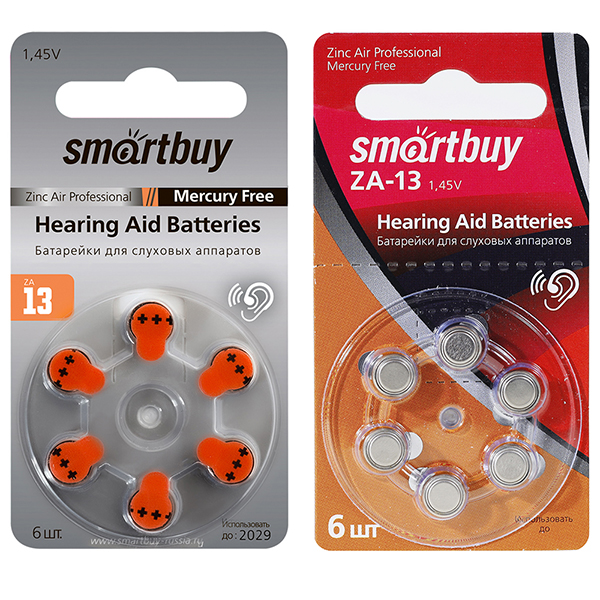 Батарейка для слуховых аппаратов " Smartbuy " A13-6B, 1,45V, воздушно-цинковая