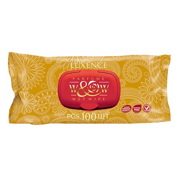 Салфетки влажные парфюмированные 100шт " Well&Wet " Luxence, клапан, пластиковая крышка