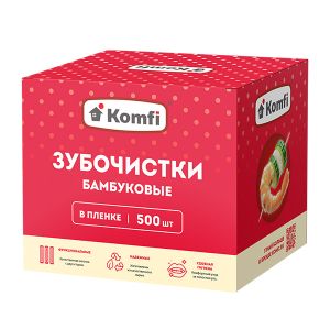 Зубочистки " Komfi " бамбуковые 500шт в индивидуальной упаковке, картонная упаковка