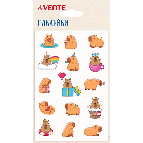Наклейки мягкие "deVENTE. Капибара" размер карточки 10x15 см, puff, объемные, многоразовые, в пластиковом пакете с блистерным подвесом.