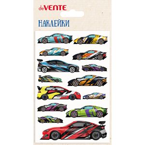 Наклейки мягкие "deVENTE. Спорткары" размер карточки 10x15 см, puff, объемные, многоразовые, в пластиковом пакете с блистерным подвесом.