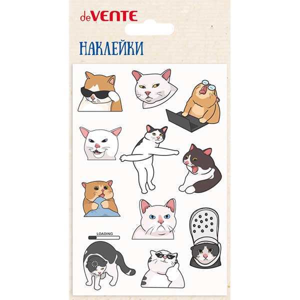 Наклейки " deVente " А6 Meme cat, объемные мягкие, многоразовые, пакет, европодвес