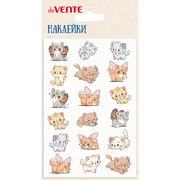 Наклейки мягкие "deVENTE. Милые котята" размер карточки 10x15 см, puff, объемные, многоразовые, в пластиковом пакете с блистерным подвесом