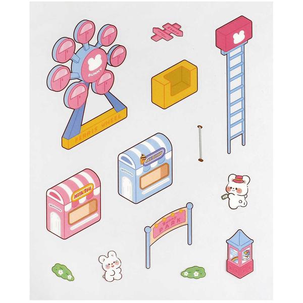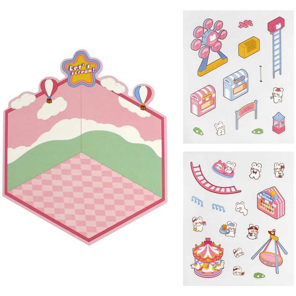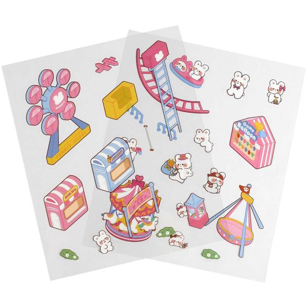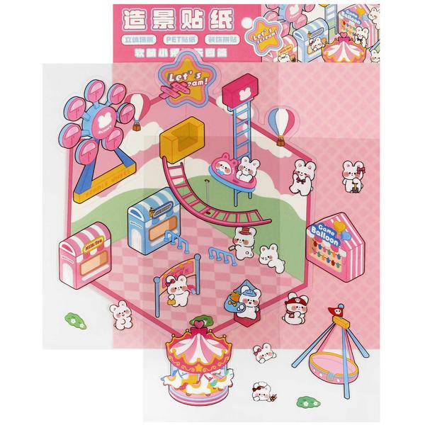 Наклейки-румбокс д/создания миниатюрных сцен, 125х150 мм, арт. 71514 / 300 КРОЛИК. ПАРК РАЗВЛЕЧЕНИЙ. (комплектность: наклейки (2 л.), поле для наклеивания (1 л.); размер листа: 125х150 мм; материал наклеек: полипропилен; кол-во наклеек: 60+; цвет: розовый; декор: полноцветная печать; индивидуальная упаковка: ПЭТ-пакет).
