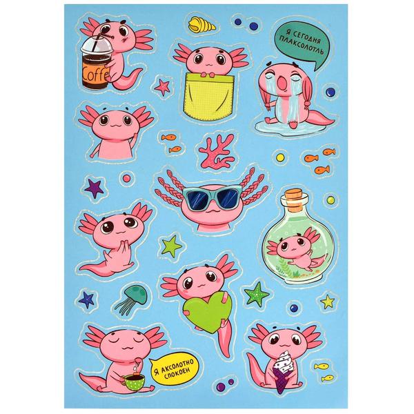 Наклейки " Феникс " А5 Мемы. Аксолотль