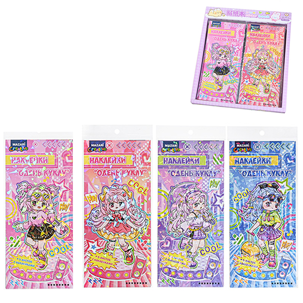 Наклейки детские " Mazari " Одень куклу, 105*235мм, 5 листов, 4 дизайна, пластик, пакет, европодвес