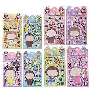 Наклейки детские " Mazari " Лабубу, сделай сам, 108*218мм, 8 дизайнов, пластик, пакет, европодвес
