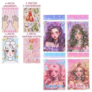 Альбом с наклейками " Mazari " Наряди куклу+Маникюр, 170*245мм, 12 листов с контурами, 5 листов с наклейками, (без возможности выбора дизайна), пакет, европодвес