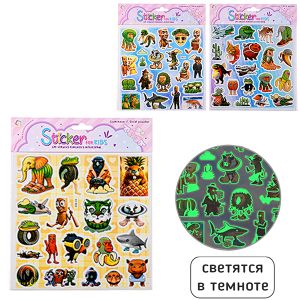 Наклейки детские " Mazari " Итал. Мем, 205*250мм, светятся в темноте, 3 дизайна, пакет, европодвес