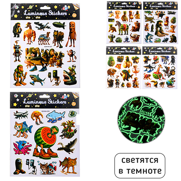 Наклейки детские " Mazari " Итал. Мем, 200*250мм, светятся в темноте, 6 дизайнов, пакет, европодвес