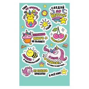 Наклейки " Мир открыток " 0-11 А6 Таю от счастья, Следуй за мечтой, Сияй, без отделки