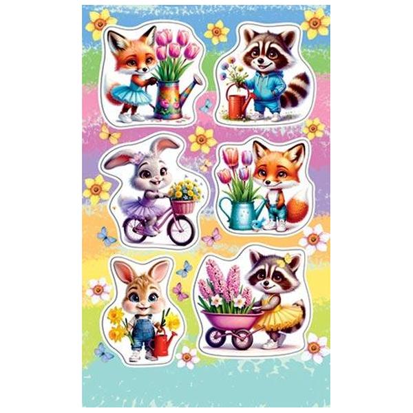 Наклейки " Мир открыток " 0-11 А6 Зверята с весенними цветами, без отделки