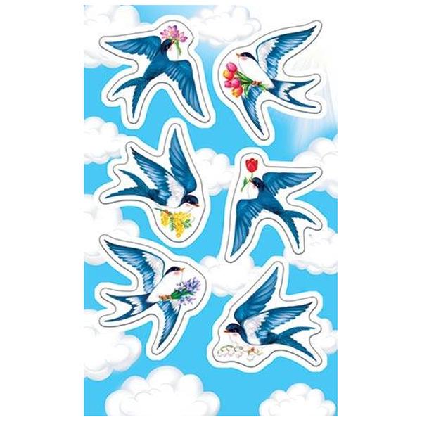 Наклейки " Мир открыток " 0-11 А6 Ласточки с цветами, без отделки