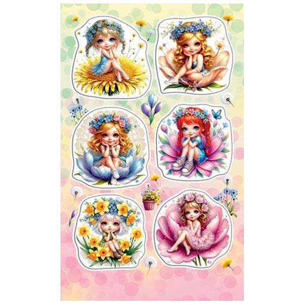 Наклейки " Мир открыток " 0-11 А6 Весенние девочки, без отделки