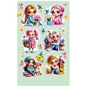 Наклейки " Мир открыток " 0-11 А6 Девочки с весенними букетами, без отделки