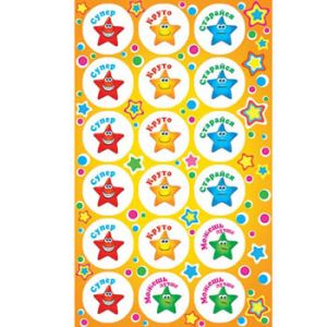 Наклейки-похвала " Мир открыток " 0-11 А6 Звездочки- Можешь лучше, старайся, супер, круто, без отделки