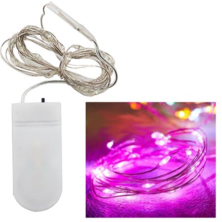 Гирлянда-проволока никого не оставит равнодушным! Она поможет создать теплую и уютную атмосферу в доме в любое время года. Такая гирлянда отлично подходит для украшения елки, окно или стены. Также ее можно использовать в качестве ночника. Размер: 1,9 м. Количество ламп: 20 шт. Работает на батарейках 2*CR2032. Цвет: фиолетовый.