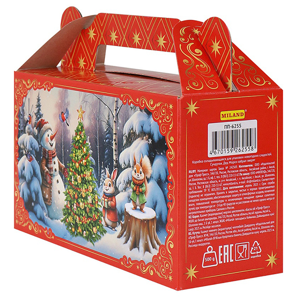 Коробка для конфет поможет создать идеальный сладкий подарок для детей на Новый Год! Вы сможете подобрать только их любимые конфеты, не переплачивая производителям. Кроме того, самостоятельная сборка поможет убедиться в том, что все сладости будут свежие и вкусные. Вместимость: 500 гр. Собственная разработка.